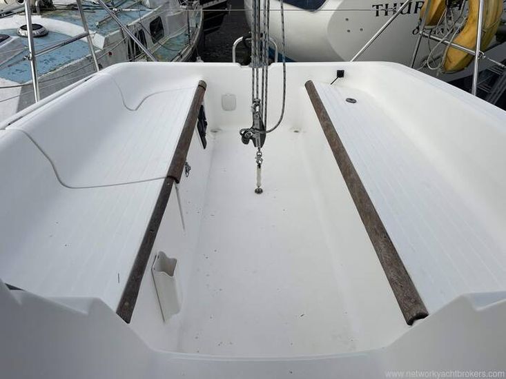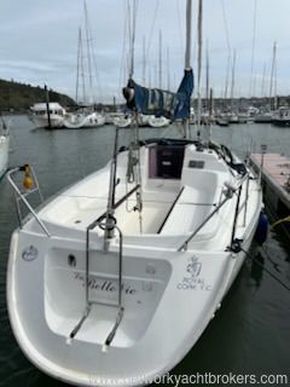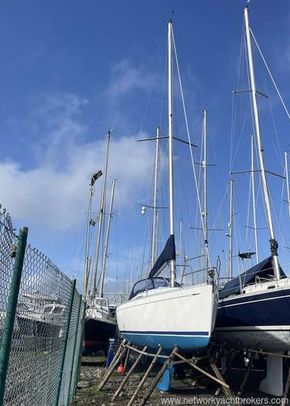 his 1999 Dufour 30 Classic is an easy to handle family boat. Her accommodation comprises saloon, forward double berth, aft cabin to port, heads to starboard, L-shaped galley and forward facing chart table. Her inventory includes a 19HP Volvo diesel engine with a 2022 sail-drive seal, six berths, slab reefing mainsail, 2025 lazy bag, 2024 furling headsail, spinnaker, 2025 sprayhood, depth, log, VHF, tiller-pilot and more. Viewing recommended.