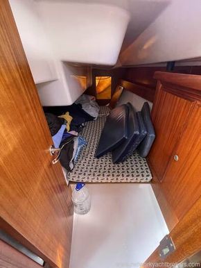NAV. STATION to starboard, comes with a forward facing chart table, seat and electric switch panel