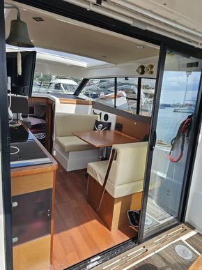 The NC9 is a much sought after highly versitile weekender boat, great for coastal navigation with accommodation of up to 6 people. Completely enclosed for the Irish weather but opens up for those nice days with its massive electric sun roof and triple panel sliding doors.