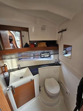 Internal shower plus additioinal shower on swim deck. Electric flush toilet