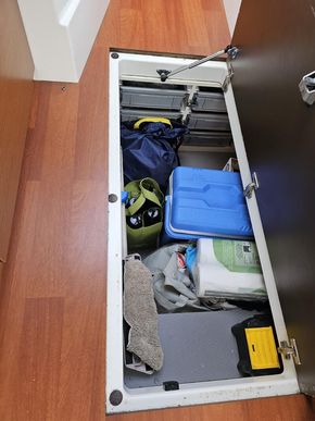 2 digital TVs, remote control spotlight, Raymarine chart plotter and VHF