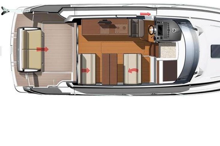 Versatile cockpit with 2 seating and table location options - teak table and deck.